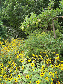 Within this hedge, above, is a pond, arbor, stone terrace, paths, & my home.